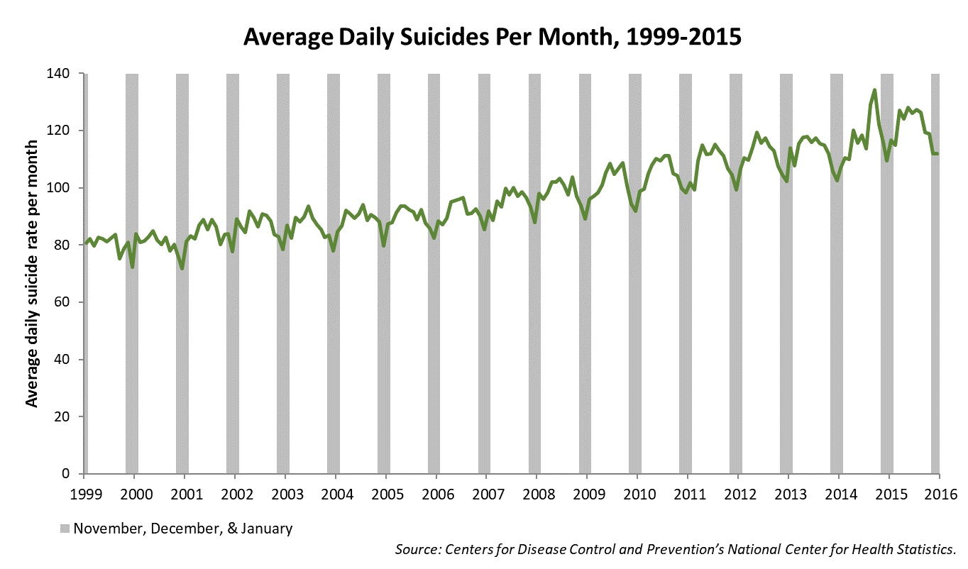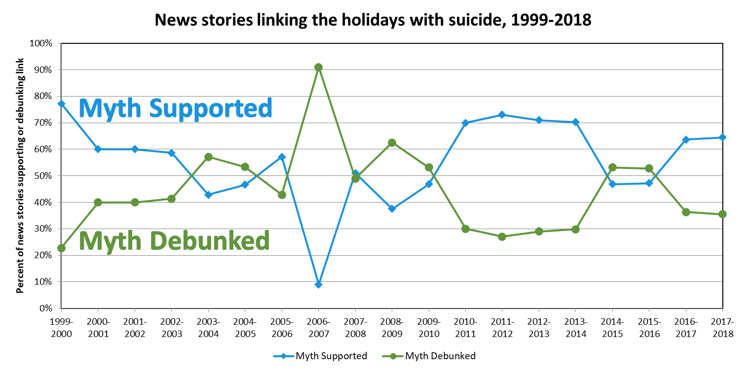 Despite the fact that the holiday season has some of the lowest average daily suicide rates, some journalists continue to perpetuate the holiday-suicide myth.